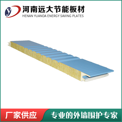 上压型钢板、优质岩棉材料、下压型钢板、两侧为聚氨酯。