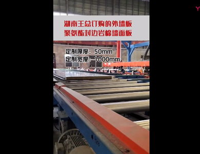 我们公司引进意大利赛浦连续生产线,采用了六组份在线工业微机自动操作(SIEMENS)混合浇注技术。生产流程分为开卷覆膜—压制成型—钢板预热—高压发泡—高温固化—锯切—板材冷却—码垛—自动打包等功能与一体的自动化生产线,年生产能力为130万平方米。