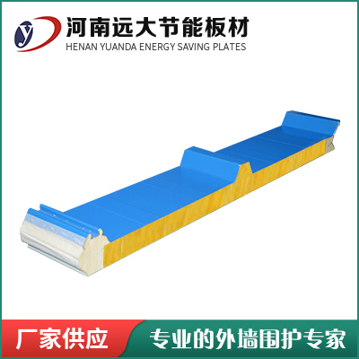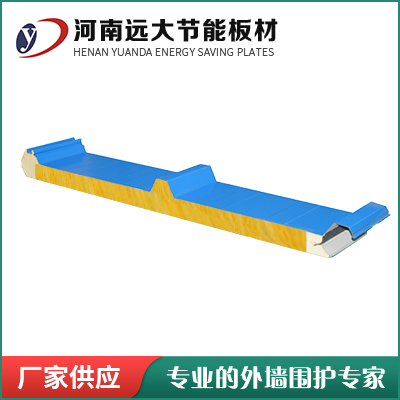 ▲ 刚度好:聚氨酯侧封玻璃丝棉屋面板夹芯材与两层钢板粘接成一个整体,共同工作,再加上屋面板上表面起波压型,其整体刚度远胜于压型板夹岩棉 (玻璃丝棉)的现场复合板材。夹芯板通过连接件与檩条固定后,大大提高了屋面的整体刚度,加强了屋面整体工作性能。选用岩棉夹芯板, 可采用较大檩距,故可节省檩条用量1/3~2/3。